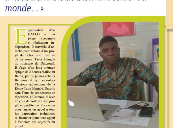 Esperendieu AGBALLO est un jeune scénariste et réalisateur indépendant. Il travaille d’arrache-pied autour d’un projet de fiction sur l’histoire de la reine Tassi Hangbé du royaume de Danxomè. Il s’agit d’un long métrage épique de 2 heures réalisé au Bénin, par de jeunes acteurs Béninois et qui racontera l’histoire authentique de la Reine Tassi Hangbé. Surpris dans l’une de ses séances de répétition, à Cotonou, il lève un coin de voile sur son projet et profite de l’occasion pour lancer un appel à tous les partenaires techniques et financier pour leur appui à l’atteinte des objectifs du projet.